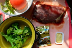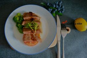 准备好上述食材,西兰花焯水,葱切丝,柠檬皮切丝。