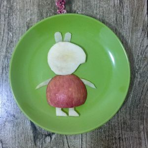 苹果切片,然后切成图中的形状。