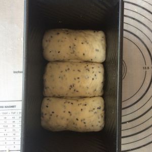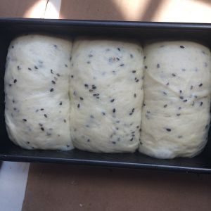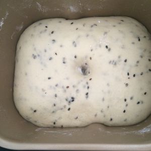 一个程序后加入软化的黄油、黑芝麻,继续揉至完全扩展阶段。