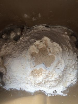 所有材料除黄油,黑芝麻外放入面包机桶内,启动揉面程序。