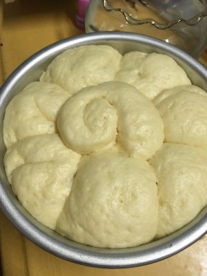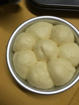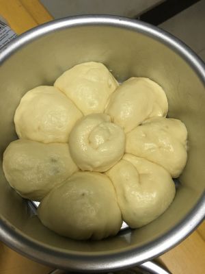 放烤箱里二发,里面放一碗热水。大约四十分钟,天气热,很快就发好了