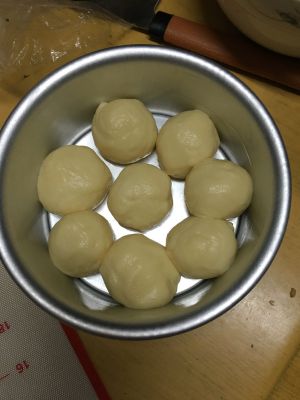 分10等分,滚圆,盖好,醒15分钟。面团500多克重。每个50多一点。