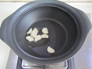烧热锅, 放入适量的油, 下入蒜片煸炒;