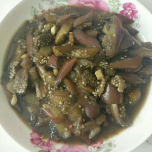 2.锅中放入少许油,放入线椒和蒜片炸香,放入茄子翻炒片刻,加入少许生抽和料酒,翻炒出香味,加入少许水,盖盖闷熟至汤汁浓稠,出锅前加入少许鸡精调味即可