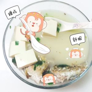 大火煮鱼5分钟之后放入豆腐。小火再煮10分钟左右放入盐和葱,香菜。即可。