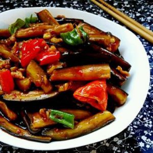 茄子切段,用少量盐腌一下。洋葱,姜,蒜切沫。青红椒切段。猪肉切肉末。生抽,醋,白糖,料酒,淀粉,清水调成鱼香汁。