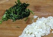 调入盐、糖、生抽、陈醋、蒜和香菜,稍微搅拌一下