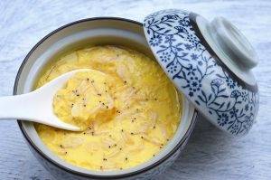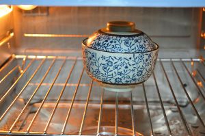 盖上碗盖,送入蒸箱;(家里没有这种带盖的碗,可以直接用盘子盖上去,也可以用保鲜膜,记得用牙签扎几个洞)