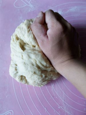 加入黄油和面到面团可拓展状态,其实不用纠结有没有手套膜,只要和面到位,味道一样好吃有嚼劲