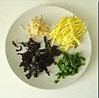 将蛋皮切丝、韭菜切碎、紫菜剪碎