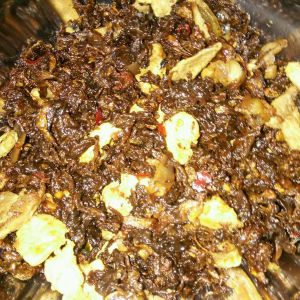 放入少量的豆瓣酱 不要太多,咸菜不缺盐 不然太咸了