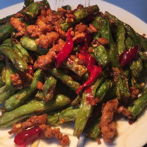 锅里留底油,下蒜沫,姜沫,肉沫翻炒