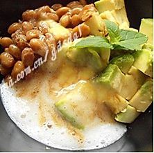 纳豆、牛油果、山药泥、调料的芥末包和酱油包倒入即可。