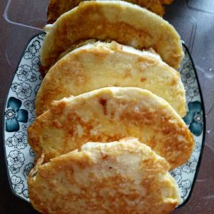 一道美味的煎馒头就做好了,再来碗粥跟小菜,美好的一天开始喽