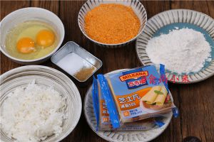 新焖的热米饭、百吉福减脂芝士、面包糠、高筋面粉、胡椒粉、盐、油