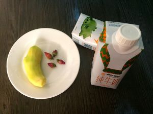 姜50g,干玫瑰花4朵,蒙牛嗨milk纯牛奶250g,糖10g