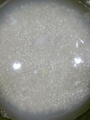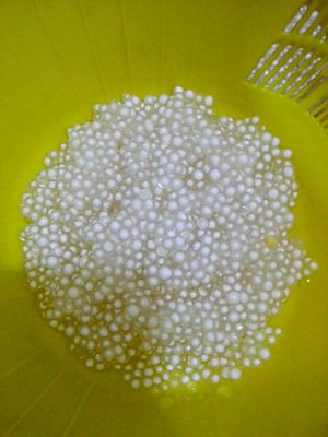 捞出米筛冲凉备用(我喜欢吃这种的口感很Q,想吃软一点的可以关火后盖盖子再焖上5分钟再捞出开)