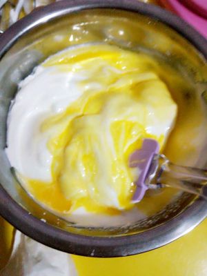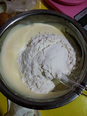 筛入低筋面粉,用翻拌的手法快速搅拌均匀