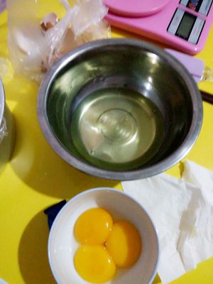 蛋清和蛋黄分开,容器一定要擦干水,蛋清中加几滴白醋