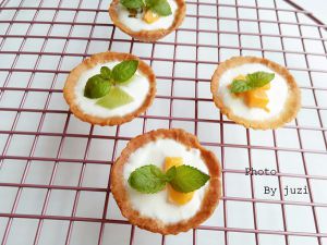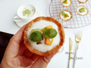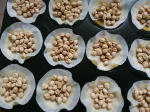 9.放入预热好的烤箱中层180℃15分钟后取出豆子和油纸再烘烤5分钟,出炉取出放凉装饰即可