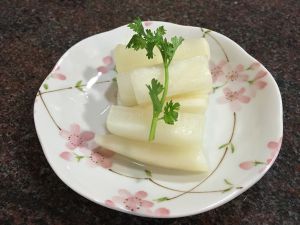 就地取材,家里没有白醋,就在超市里买的白砂糖和柠檬醋,做出来感觉居然也不错!