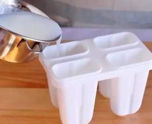 5. 熬好的冰棍水自然冷却后,倒在冰棍模具中,放在冰箱冷冻4个小时以上。