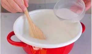 1. 糯米粉里加入20毫升的清水稀释