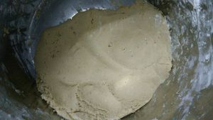 南瓜泥和适量白砂糖,木薯粉,糯米粉搅拌揉搓至不粘手