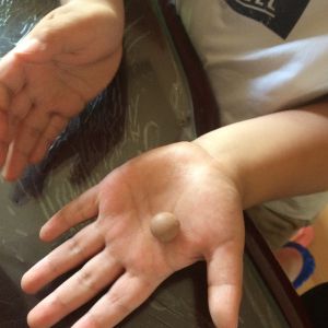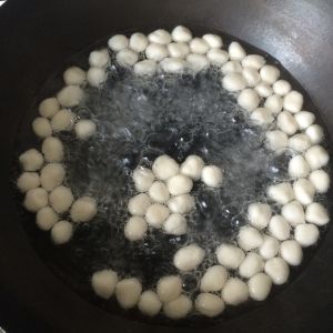 开始做芋圆,可以搓成长条后,用刀切,或者是像我一样揪成小团后搓圆!我家有小帮手,所以就搓成小团了