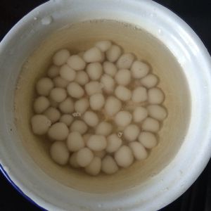水烧开后,把芋圆倒入锅里,煮到芋圆都浮上来,我是夹了一粒尝了一下的,基本芋圆浮到水面就熟了