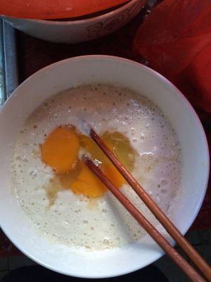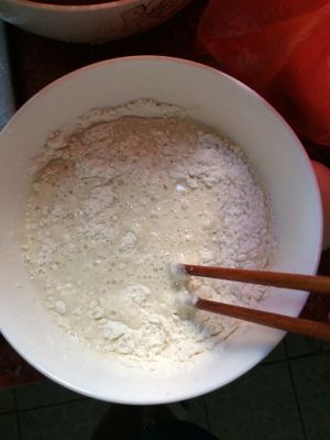 面粉加水,搅拌!注意稀一点好、也不能太稀、面粉不要有疙瘩