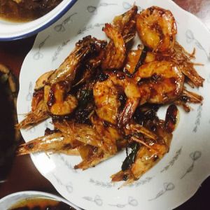4:炒锅内放适量橄榄油,烧热至6成热左右 。倒入大虾 ,翻炒均匀,每个虾都要沾上油哦。5:煎至两面变红出油,捞起放旁边备用。6:锅内留底油 ,放入姜丝,葱丝、蒜末炒香,放入刚调好的汁 ,倒入炸好的大虾,再倒入适量料酒,盖上锅盖,焖烧至收汁,最后加点盐即可。