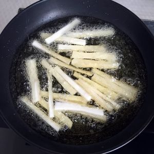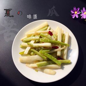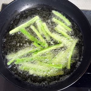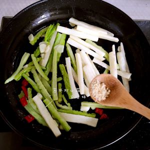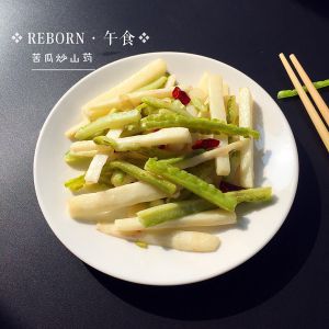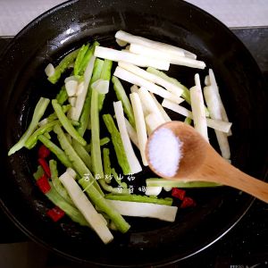 下入苦瓜和山药快速翻炒,出锅前调入适量的盐