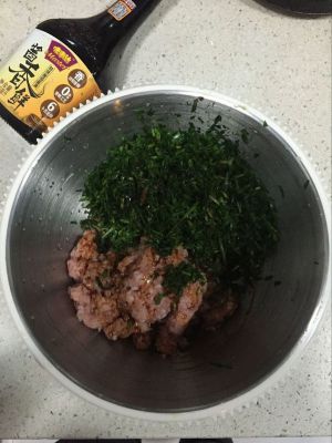 同样将韭菜也搅细碎加入,再用酱油,色拉油微调味成馅。