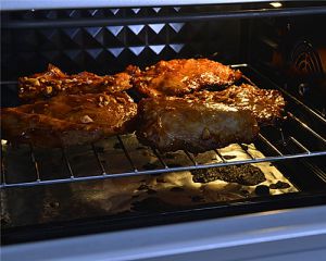 烤到20分钟时,翻转再烤另外一面。最后五分钟时两面再扫上蜂蜜各烤一下至焦香