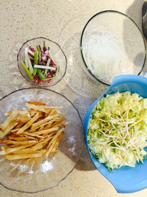 准备 包菜 豆芽 肉丝 香肠