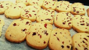 冷冻好之后拿出切成厚片,烤箱150℃预热五分钟,放入中层烤20分钟左右,上色即可。