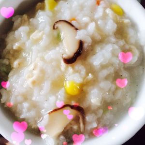 粥煮到图一的程度,放入所有焯好水的食材(我把姜挑出去了),再放入适量玉米粒,熬煮片刻就可以出锅啦!