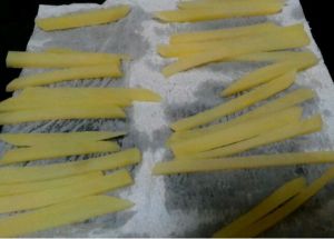 捞起用厨房纸吸干水份(有烤箱的可以120度烤10分钟)收干水分,这步很重要,一定要晾干水分