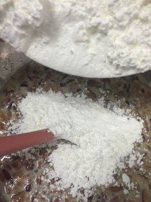 将蜜豆、红枣倒入糊中搅拌均匀。