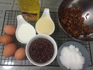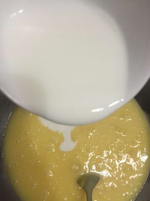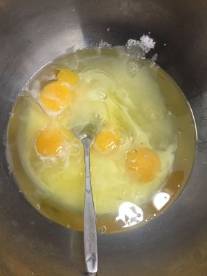 鸡蛋、炼乳、白糖、油一起放入盆中。