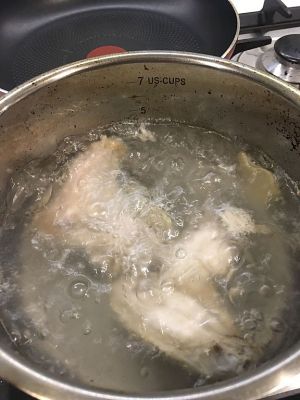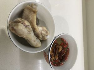 把所有材料丢进锅里,加入约3碗水,再加入两片姜用来辟腥。
