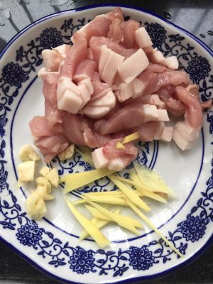 猪肉选取有肥有瘦的那种,不能太瘦,笋干在吸了油脂后更加好吃。