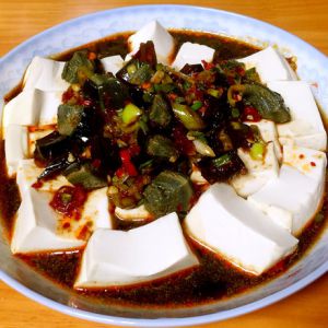 汁液腌制10分钟后,直接倒在豆腐上即可。