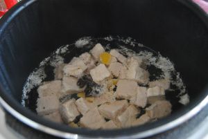 倒入适量的清水,放入香葱段,放入高压锅煮10分钟左右即可