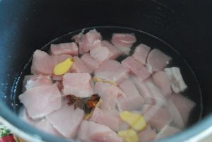 猪前腿肉去掉肥肉和皮,洗净切成半个麻将大小的块