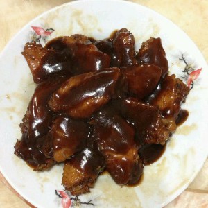 把汤再加地瓜粉水,勾芡,收融汁,淋到鸡翅上面。完成