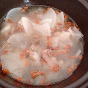 放入砂锅,加入水,盐,糖,醋。沸时入枸杞,味精,红酒调味。