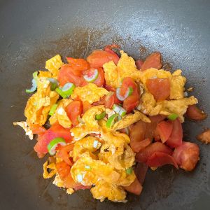 最后放入小葱花,一道西红柿炒鸡蛋就好了