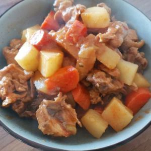 炖上40分钟,加盐加土豆,哈哈,找到了一个胡萝卜,一起加进去,炖!